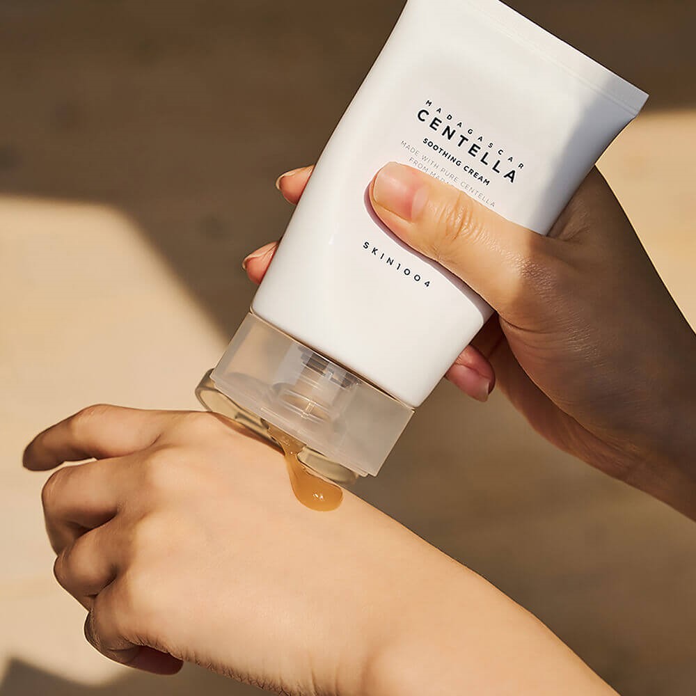 Охлаждающий защитный крем с центеллой SKIN1004Madagascar Centella Soothing Cream снимает раздражение и покраснение, смягчает, стимулирует процесс восстановления и устраняет шелушение.